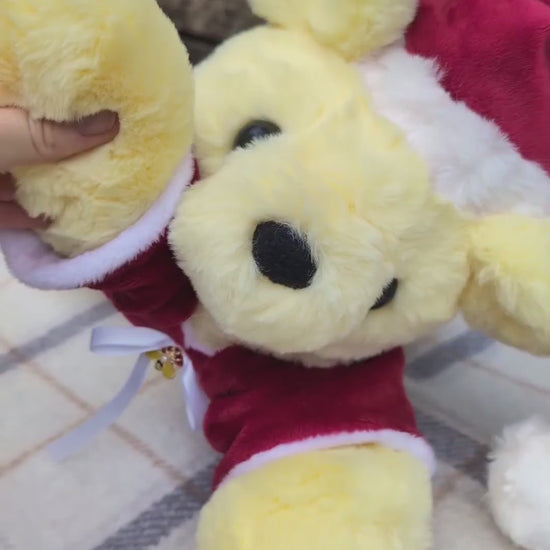✂️ Materials- plush faux fur, minky, fleece, ribbon and a charm. Has plastic safety eyes. Filled with poly fill and a mix of poly pellets in limbs.